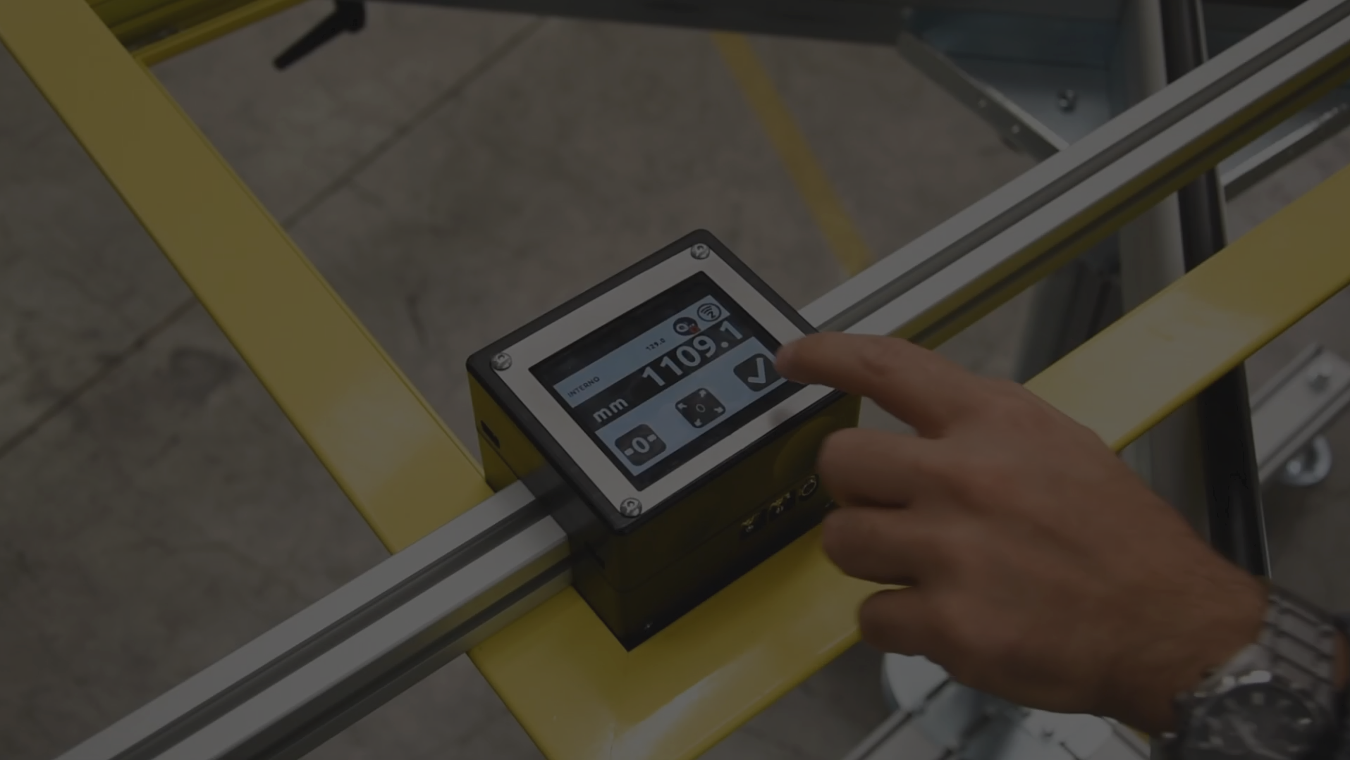 Die elektronische Messlehre mit grafischem Touchscreen-Farbdisplay erfasst die Maße der Scheibenleisten. Die Maße werden über Funkschnittstelle oder Bluetooth an die Rollenbahn gesendet. Es ist möglich, Korrekturfaktoren einzufügen, mehrere Messlehren an denselben Empfänger anzuschließen und die Maße aufzeichnen zu lassen.