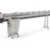 Transportador de rodillos con tope de posicionamiento accionado mediante motor CC controlado por encoder. El tope di apoyo patentado con superficie de deslizamiento bajo el plano de trabajo permite contar con una referencia en cualquier condición operativa. Cuando el transportador de rodillos funciona sincrónicamente con la tronzadora, es posible transferir las listas de corte y gestionar un archivo de perfiles con memorización de las alturas. Asimismo, se pueden introducir macros y es más fácil la introducción de datos para las mecanizaciones con ángulos fijos, así como la corrección del espesor barniz. El equipamiento puede incluir galga electrónica, receptor Bluetooth y lector de códigos de barras o QR. La mesa de apoyo tiene 200 mm de ancho.